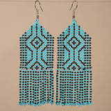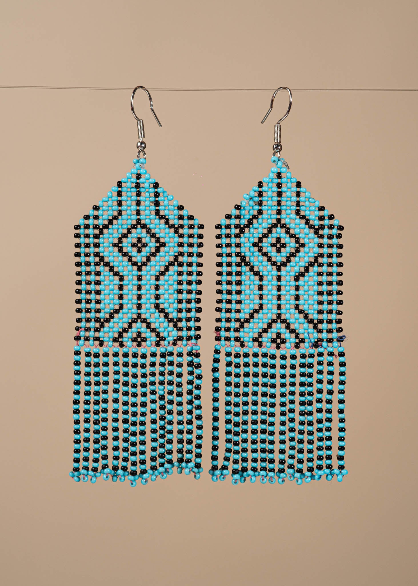 Feitas à mão, com duas linhas de nylon, miçangas de vidro, as joias refletem a beleza da floresta nos tradicionais grafismos do povo Mebengokré, autodenominação Kayapó.