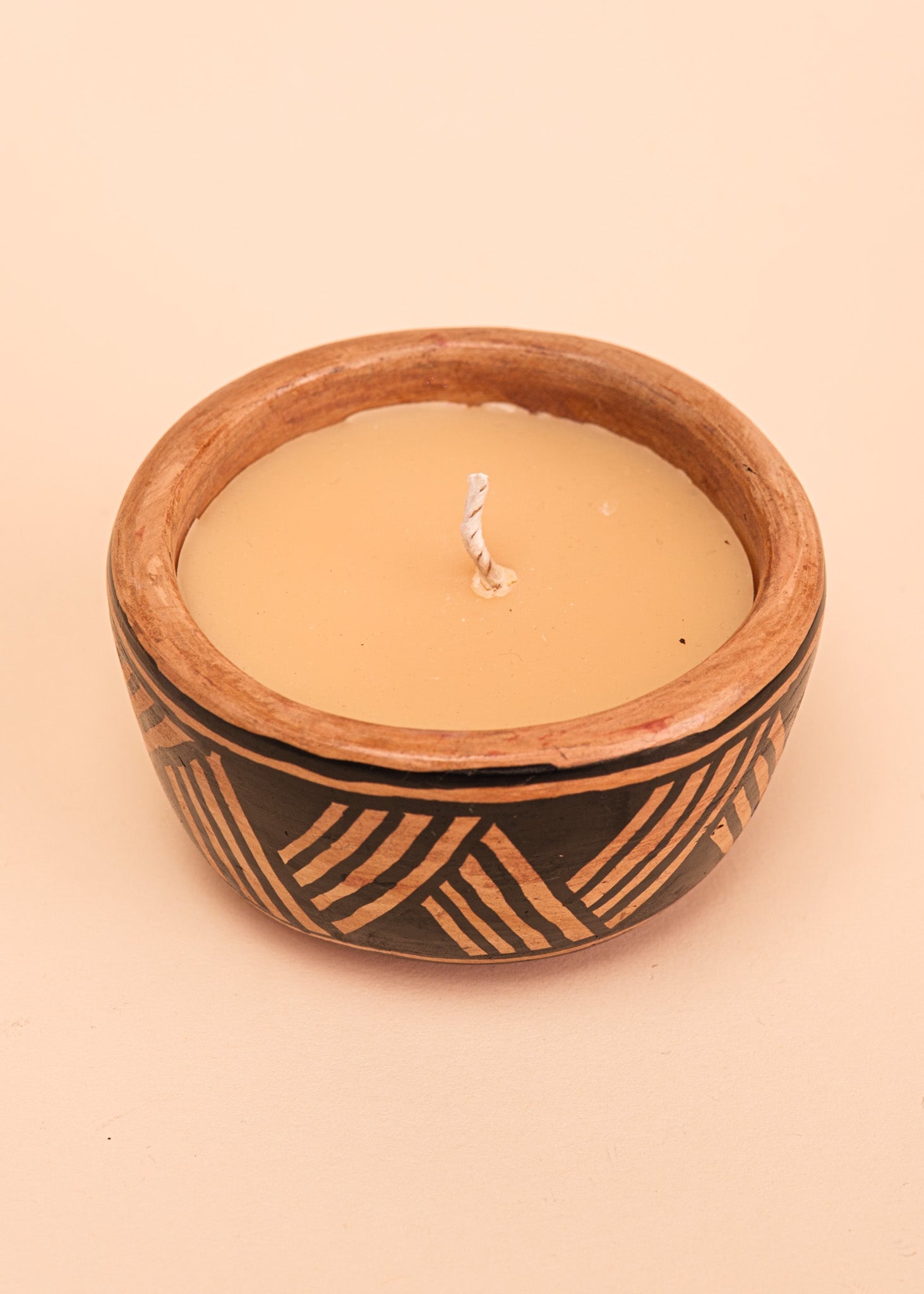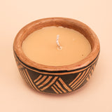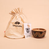 As velas da Urucuna são feitas com manteiga de tucumã e óleo de cumaru, provenientes de cadeias extrativistas sustentáveis da Amazônia. Após o uso da vela, a cerâmica permanece como um objeto funcional e decorativo para a sua casa.