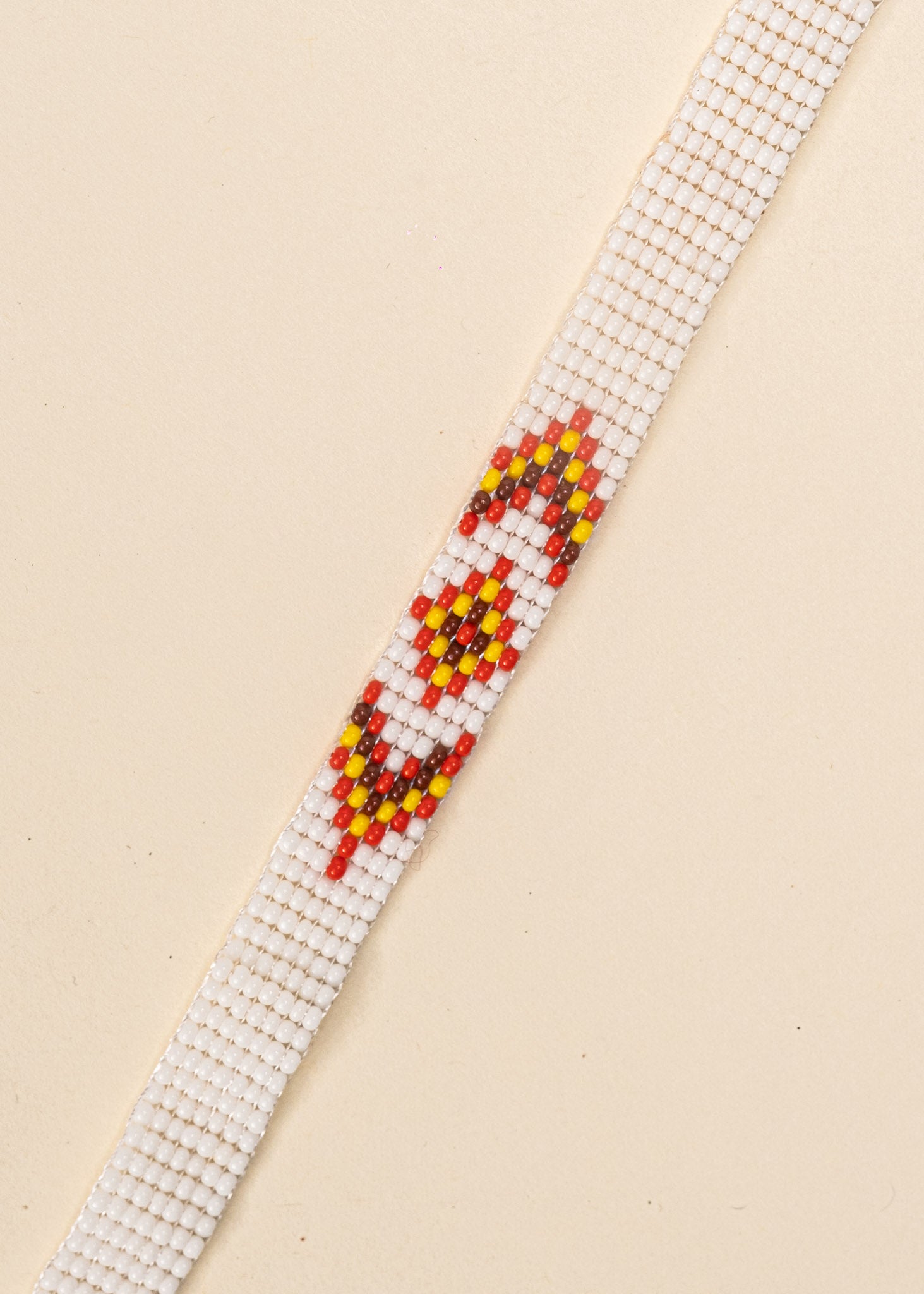 As artesãs do povo Mehinako, do Alto Xingu, criam a mão cada pulseira feita com miçangas de vidro. Esse trabalho manual carrega um repertório técnico e cultural passado e aprimorado ao longo de gerações, através do qual o povo Mehinako re-existe com força e beleza.