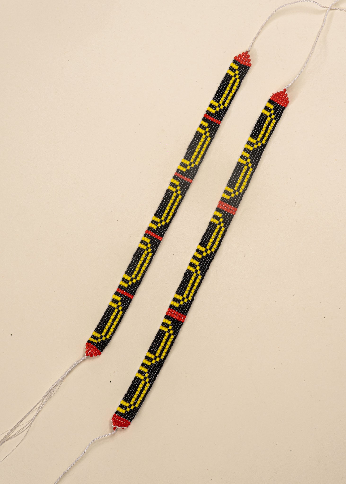 As artesãs do povo Mehinako, do Alto Xingu, criam a mão cada pulseira feita com miçangas de vidro. Esse trabalho manual carrega um repertório técnico e cultural passado e aprimorado ao longo de gerações, através do qual o povo Mehinako re-existe com força e beleza.