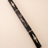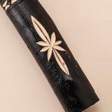 Instrumento musical tradicional, o pau de chuva é feito com materiais naturais e pintado com grafismos tradicionais do povo Taurepang. Além de seu uso musical, é valorizado como objeto decorativo e cultural.
