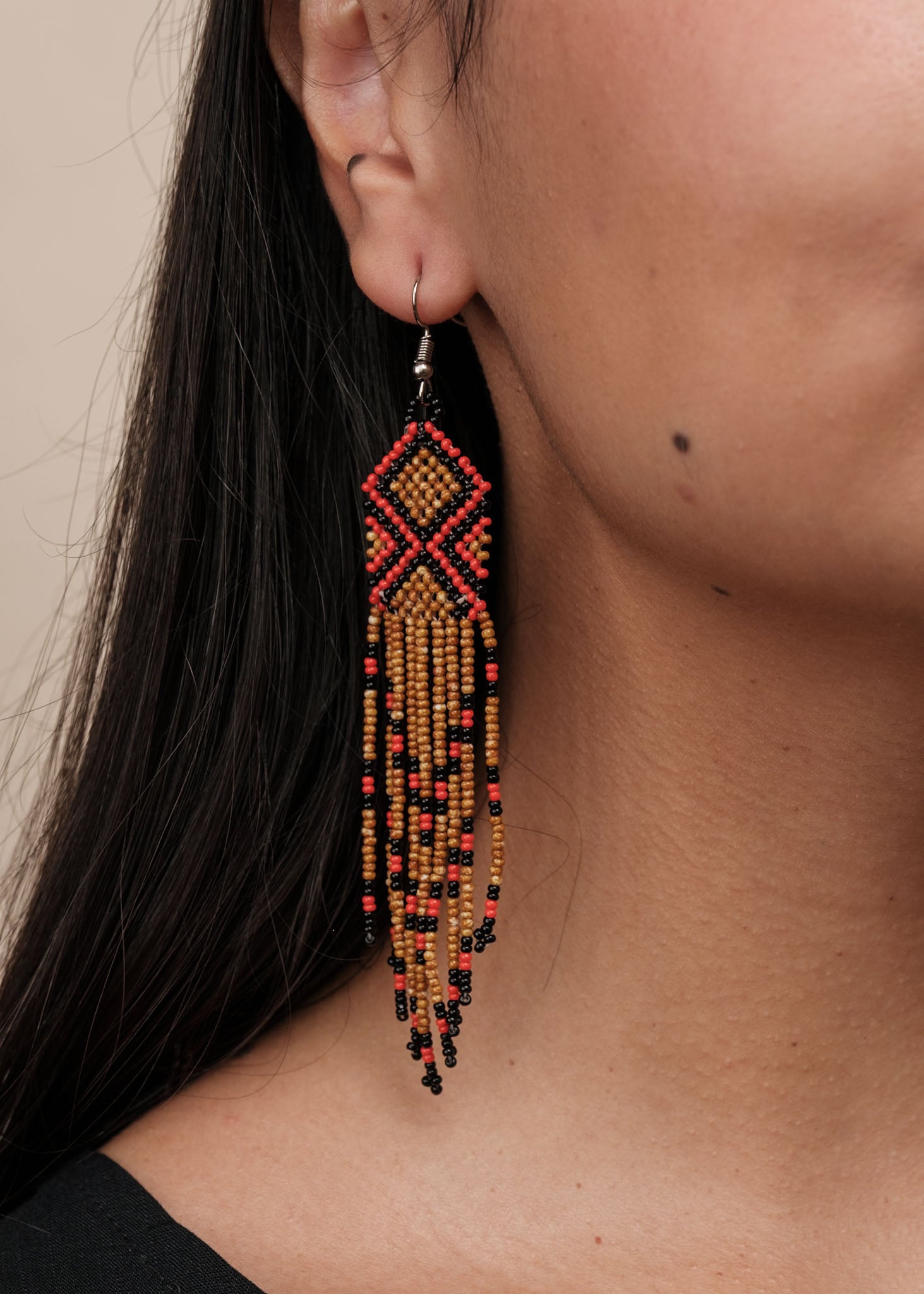 A produção dos brincos de miçangas é resultado de um saber ancestral transmitido entre gerações. O trabalho detalhado com miçangas de vidro reflete a conexão com a cultura e os valores do povo Kamayurá, sendo um exemplo de como as tradições são mantidas vivas por meio da arte. Esse processo faz parte de um sistema mais amplo de trocas culturais e rituais inter-étnicos, que fortalece a união e a identidade das comunidades do Xingu.