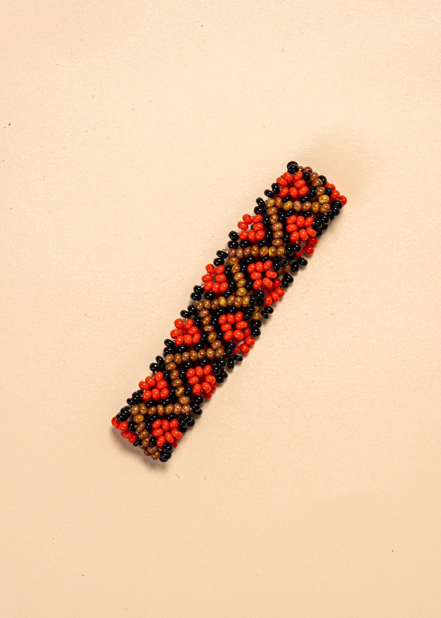 As mulheres do povo Waurá aliam nessa arte o conhecimento tradicional dos grafismos à força criativa de cada artista. Elas demoram até 3 dias na criação de cada item feito com miçangas de vidro.