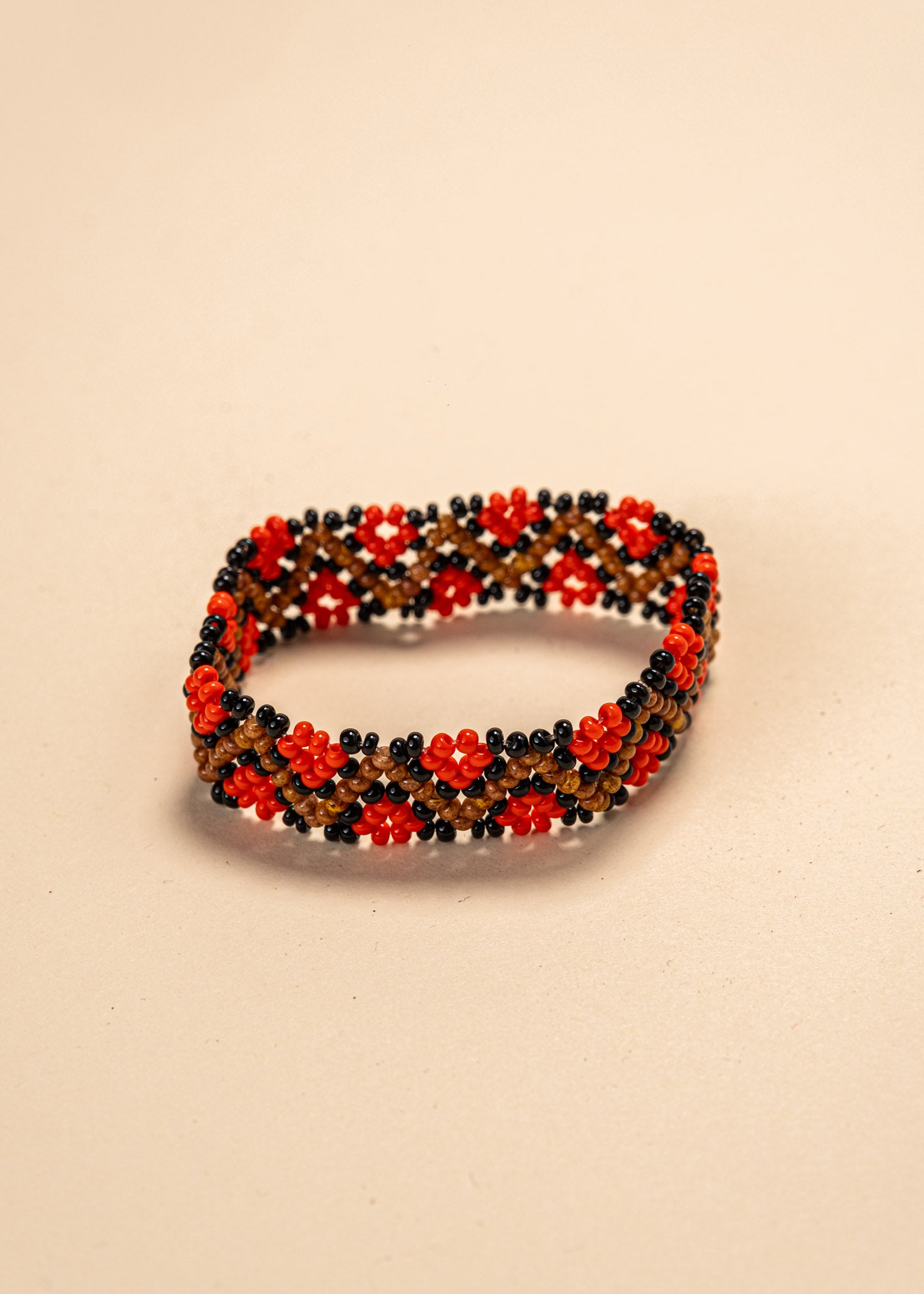 As artesãs do povo Waurá, da Aldeia Ulupuwene, dedicam até três dias para criar cada pulseira elástica feita com miçangas de vidro. Esse trabalho manual carrega um repertório técnico e cultural passado e aprimorado ao longo de gerações, através do qual o povo Waurá re-existe com força e beleza.