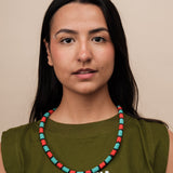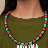 Criado exclusivamente pelo núcleo familiar da Yawapa Kamayurá para a Tucum, as gargantilhas trazem os grafismos tradicionais do povo Kamayurá.