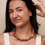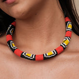 Criado exclusivamente pelo núcleo familiar da Yawapa Kamayurá para a Tucum, as gargantilhas trazem os grafismos tradicionais do povo Kamayurá.