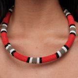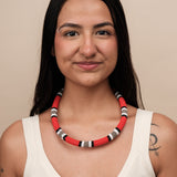 Criado exclusivamente pelo núcleo familiar da Yawapa Kamayurá para a Tucum, as gargantilhas trazem os grafismos tradicionais do povo Kamayurá.