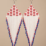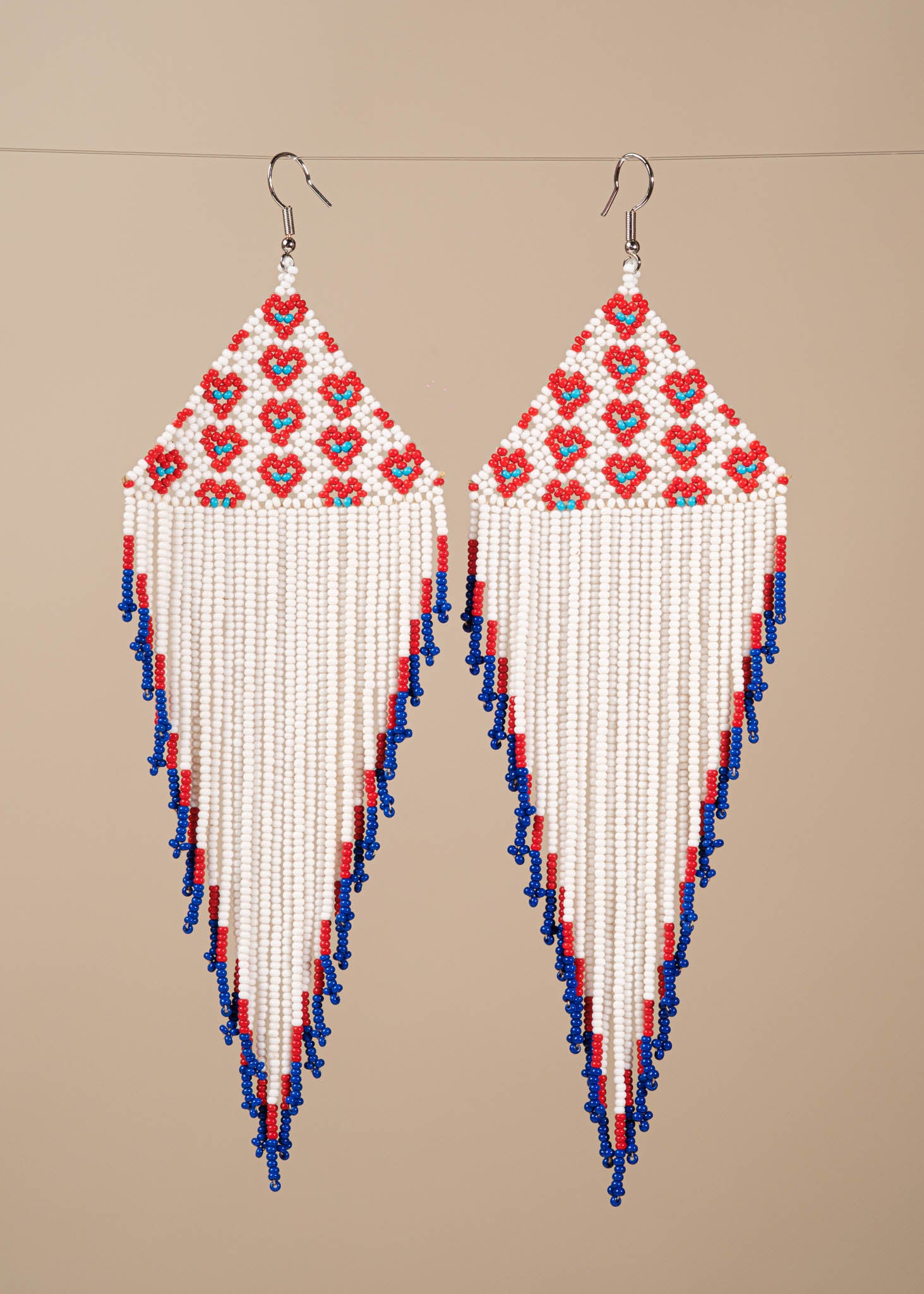 Feitas à mão, com duas linhas de nylon, miçangas de vidro, as joias refletem a beleza da floresta nos tradicionais grafismos do povo Mebengokré, autodenominação Kayapó.