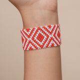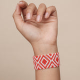 As mulheres do povo Waurá aliam nessa arte o conhecimento tradicional dos grafismos à força criativa de cada artista. Elas demoram até 3 dias na criação de cada item feito com miçangas de vidro