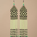 Feitas à mão, com duas linhas de nylon, miçangas de vidro, as joias refletem a beleza da floresta nos tradicionais grafismos do povo Mebengokré, autodenominação Kayapó.