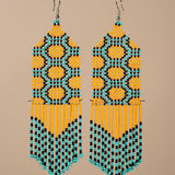 Feitas à mão, com duas linhas de nylon, miçangas de vidro, as joias refletem a beleza da floresta nos tradicionais grafismos do povo Mebengokré, autodenominação Kayapó.