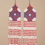 Feitas à mão, com duas linhas de nylon, miçangas de vidro, as joias refletem a beleza da floresta nos tradicionais grafismos do povo Mebengokré, autodenominação Kayapó.