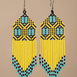 Feitas à mão, com duas linhas de nylon, miçangas de vidro, as joias refletem a beleza da floresta nos tradicionais grafismos do povo Mebengokré, autodenominação Kayapó.
