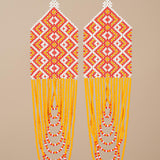 Feitas à mão, com duas linhas de nylon, miçangas de vidro, as joias refletem a beleza da floresta nos tradicionais grafismos do povo Mebengokré, autodenominação Kayapó.