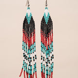 Os brincos da Artesã de Belém Gardenia Warao são criados a partir de técnicas tradicionais, usando como matéria-prima a miçanga colorida para criar peças que guardam símbolos culturais, grafismos e representações ligadas á sua ancestralidade.