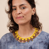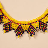 Feitas à mão, com duas linhas de nylon, miçangas de vidro, as joias refletem a beleza da floresta nos tradicionais grafismos do povo Mebengokré, autodenominação Kayapó.