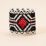 As artesãs Kamayurá aliam nessa arte o conhecimento tradicional dos grafismos à força criativa de cada artista. Elas demoram até 3 dias na criação de cada item feito com miçangas de vidro e fios de nylon.