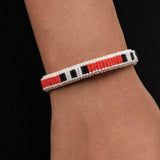 As mulheres do povo Waurá aliam nessa arte o conhecimento tradicional dos grafismos à força criativa de cada artista. Elas demoram até 3 dias na criação de cada item feito com miçangas de vidro