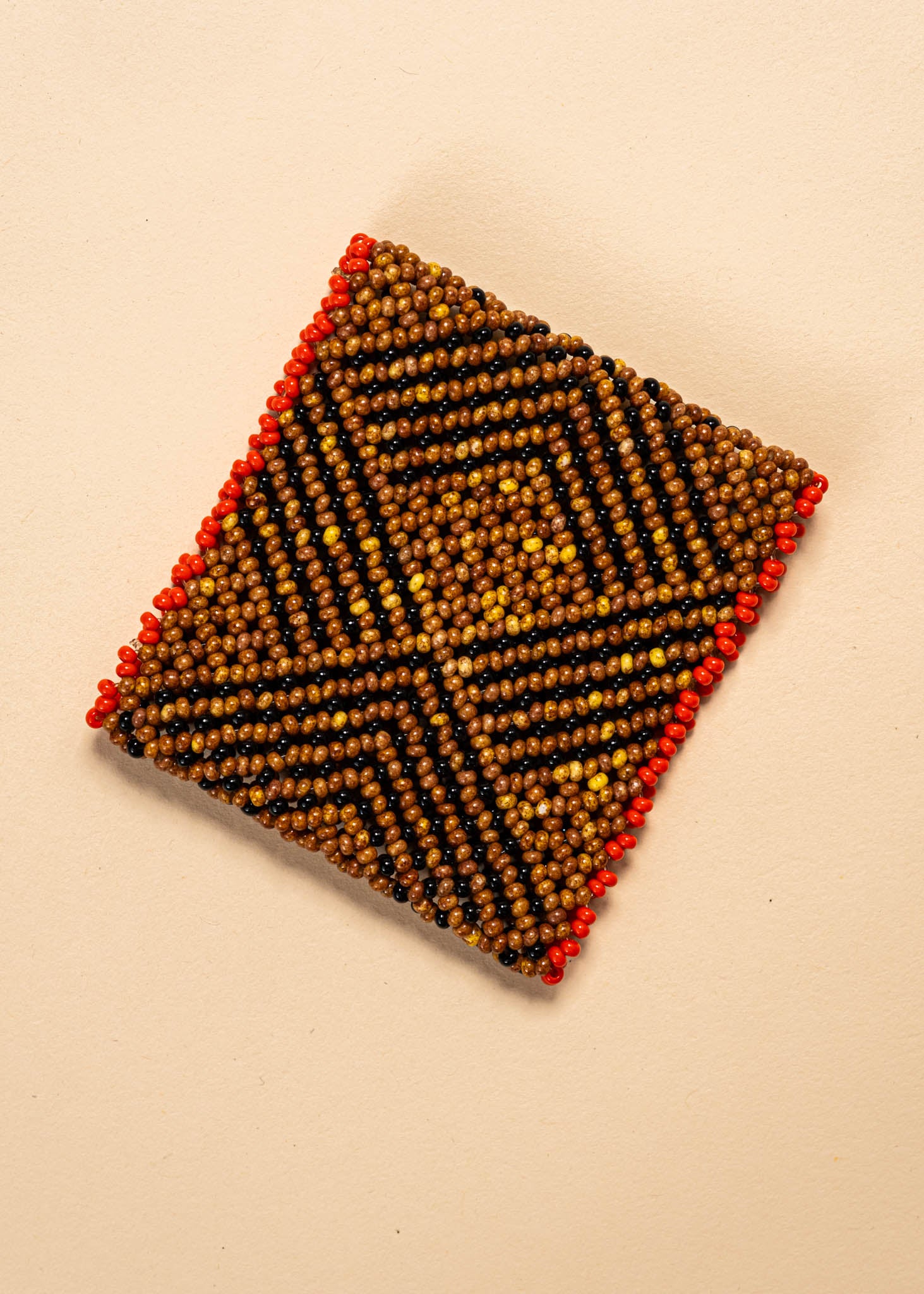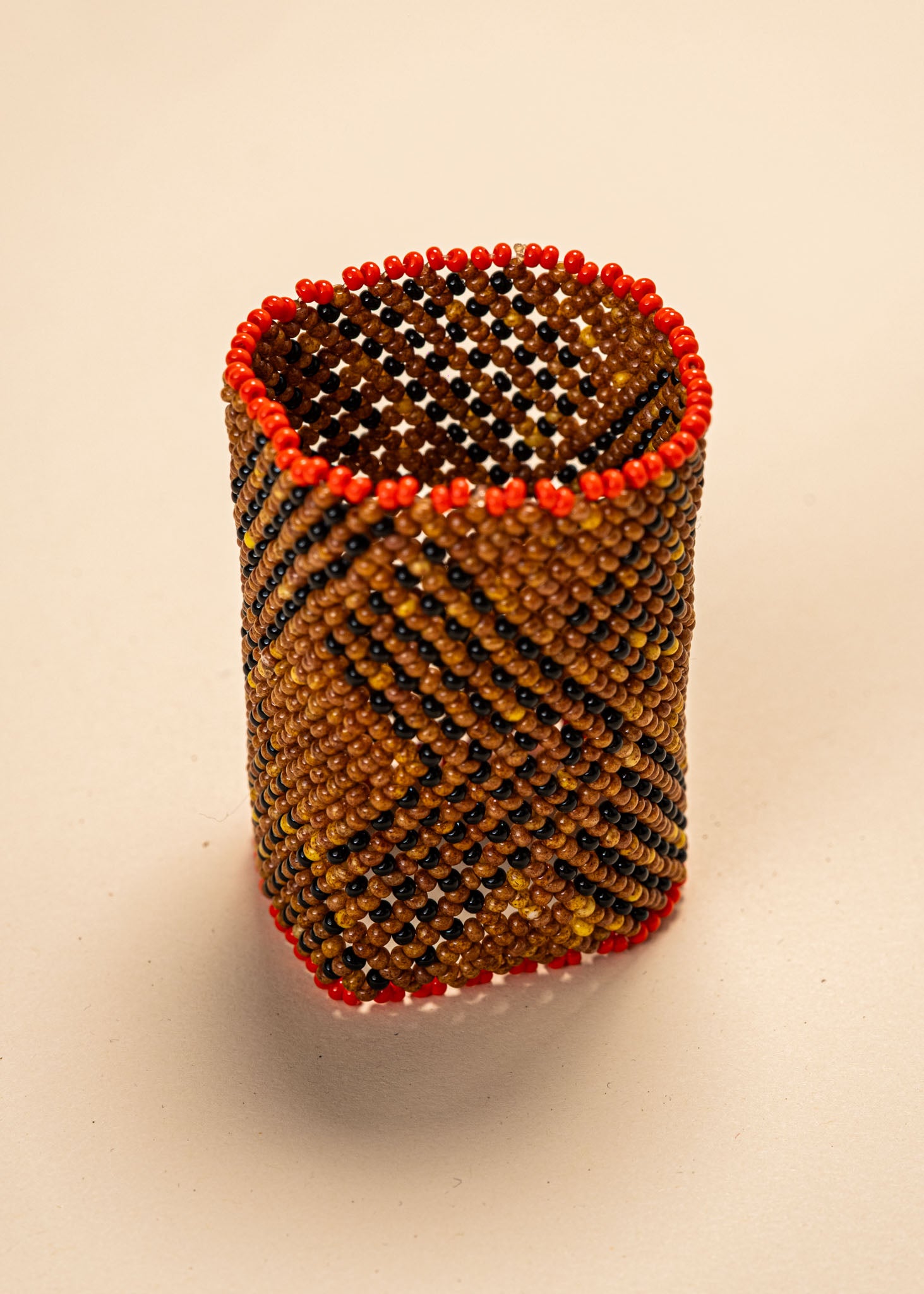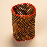 As mulheres do povo Waurá aliam nessa arte o conhecimento tradicional dos grafismos à força criativa de cada artista. Elas demoram até 3 dias na criação de cada item feito com miçangas de vidro