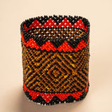 As mulheres do povo Waurá aliam nessa arte o conhecimento tradicional dos grafismos à força criativa de cada artista. Elas demoram até 3 dias na criação de cada item feito com miçangas de vidro