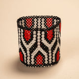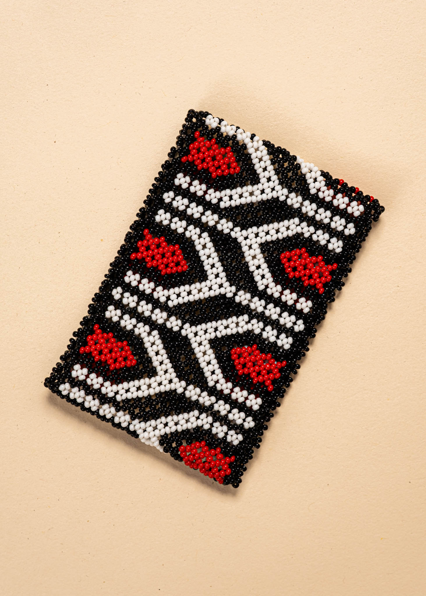 As mulheres do povo Waurá aliam nessa arte o conhecimento tradicional dos grafismos à força criativa de cada artista. Elas demoram até 3 dias na criação de cada item feito com miçangas de vidro