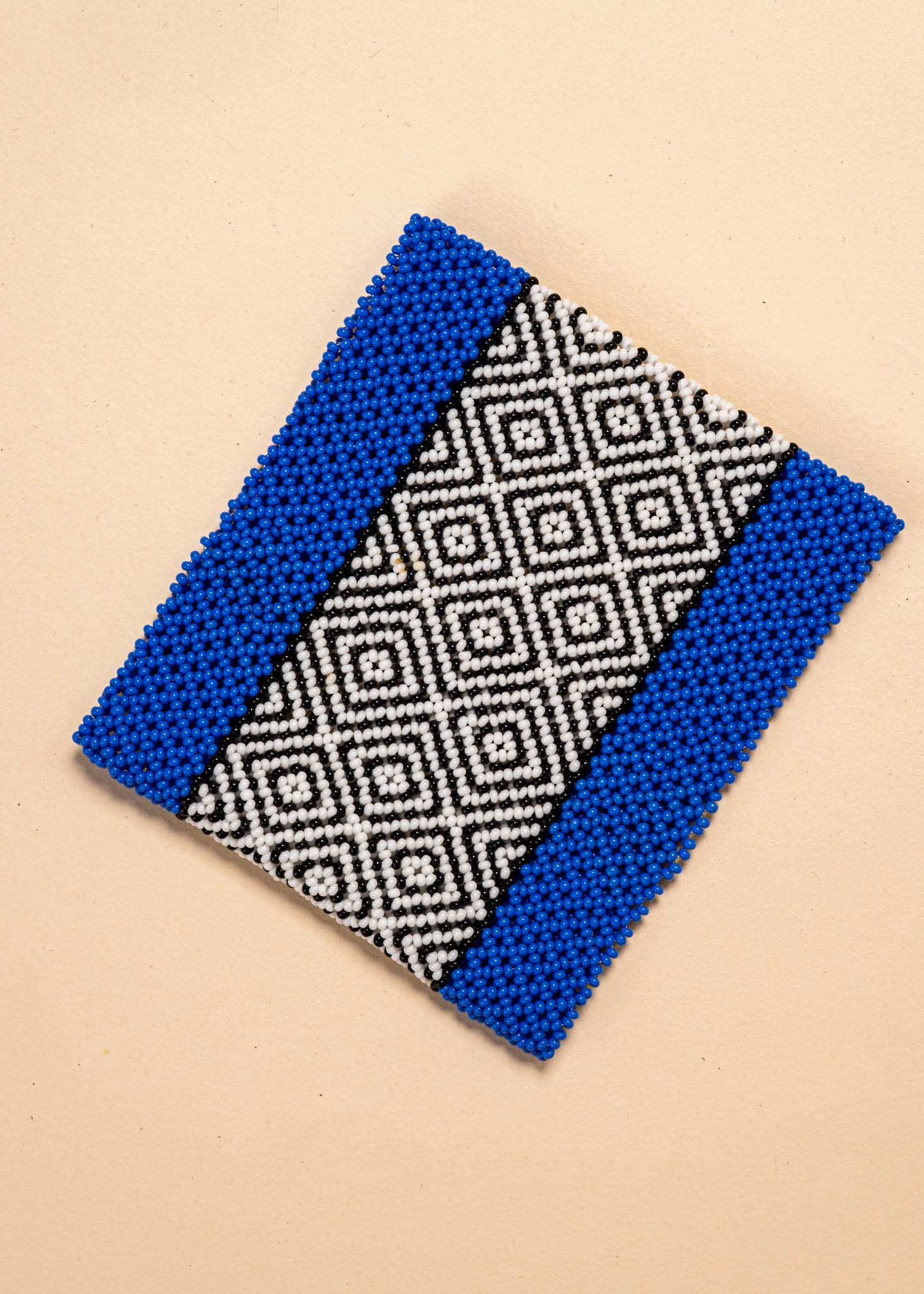 As mulheres do povo Waurá aliam nessa arte o conhecimento tradicional dos grafismos à força criativa de cada artista. Elas demoram até 3 dias na criação de cada item feito com miçangas de vidro