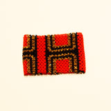 As mulheres do povo Waurá aliam nessa arte o conhecimento tradicional dos grafismos à força criativa de cada artista. Elas demoram até 3 dias na criação de cada item feito com miçangas de vidro