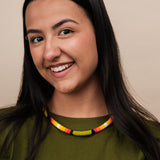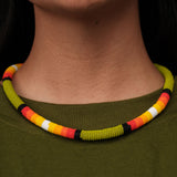 Criado exclusivamente pelo núcleo familiar da Yawapa Kamayurá para a Tucum, as gargantilhas trazem os grafismos tradicionais do povo Kamayurá.
