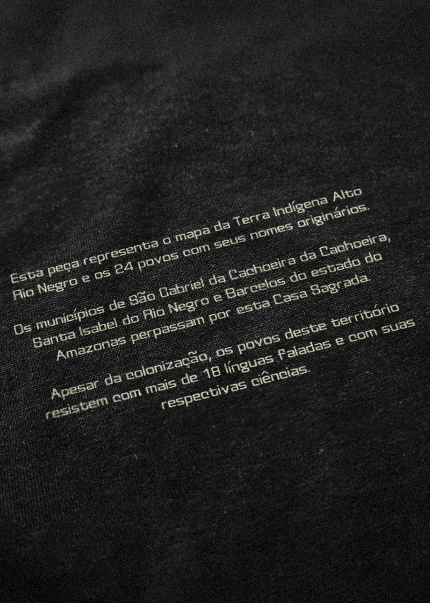• Telas de grafismos: Pintadas com tintas orgânicas, não devem ser molhadas ou lavadas para preservar as cores e detalhes