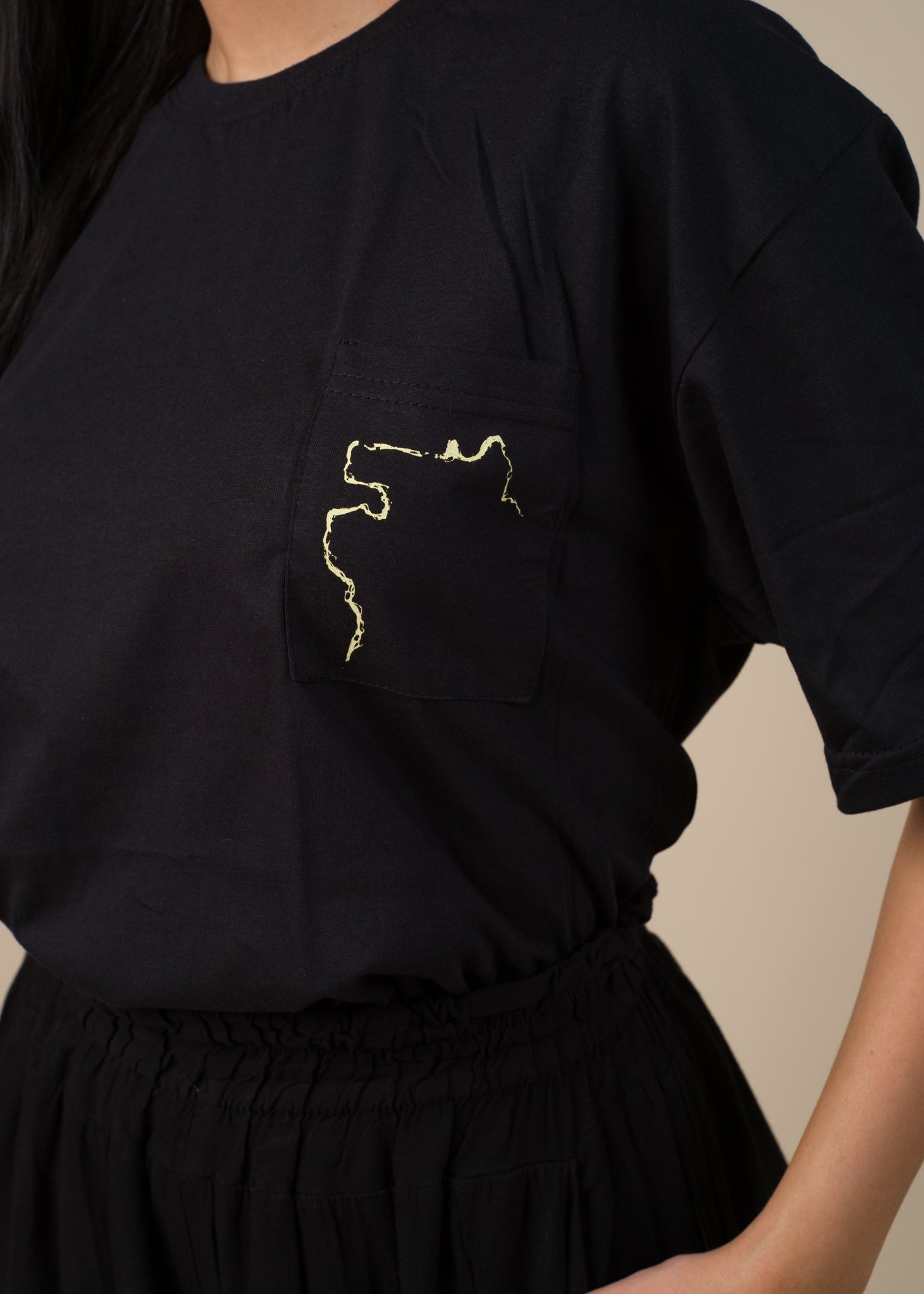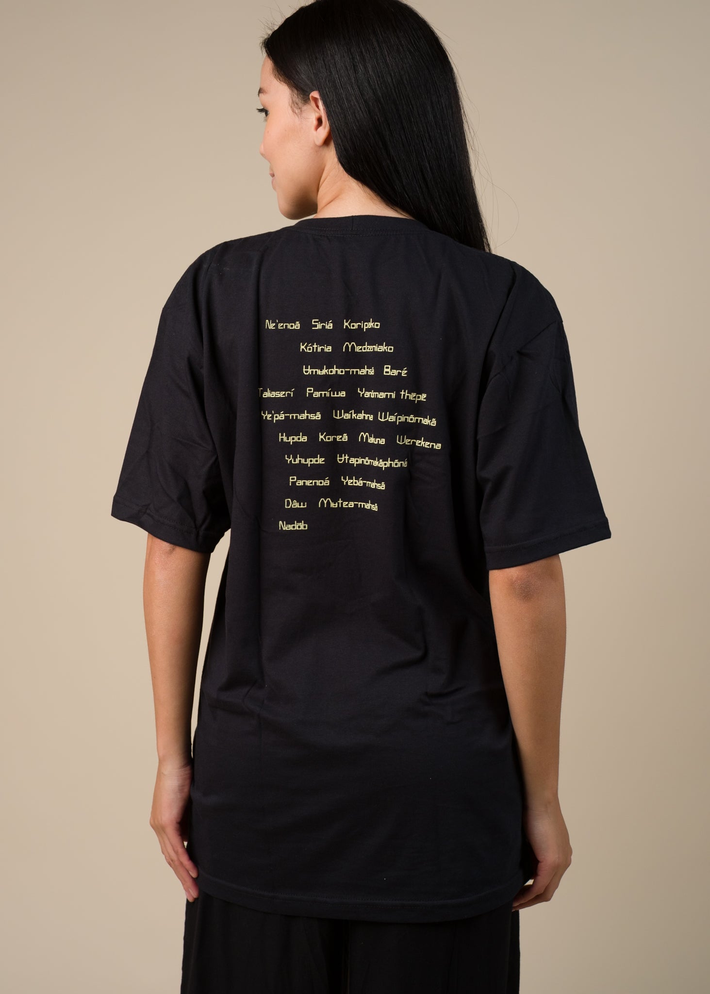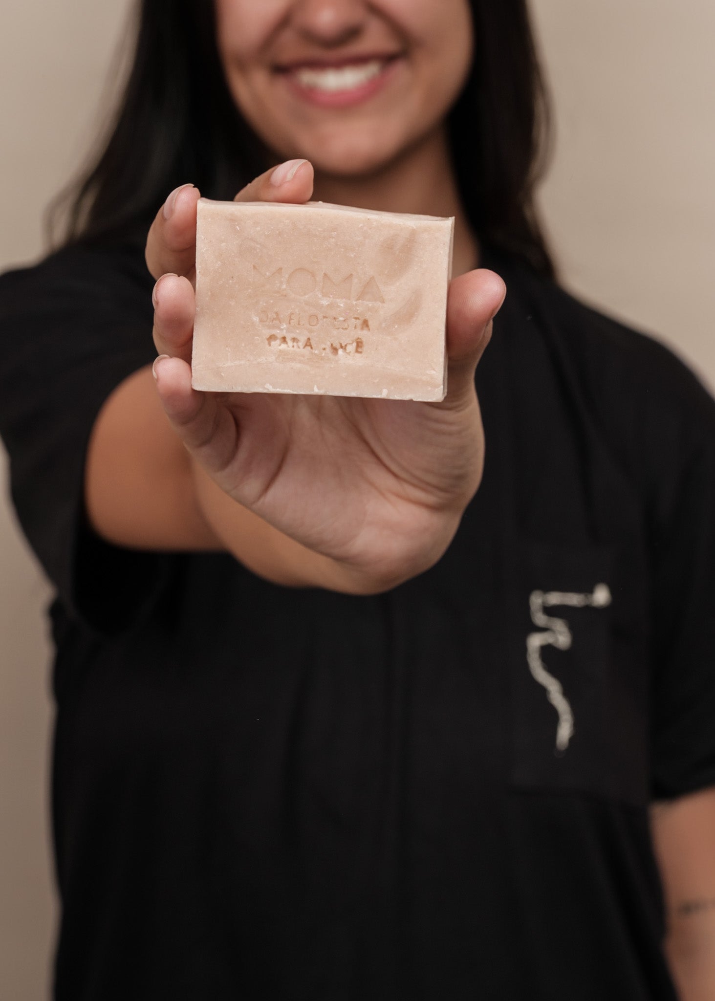 Uma camisa da Sioduhi Studio, Uma marca indígena futurista, onde todo processo de criação e desenvolvimento é feito em São Gabriel da Cachoeira, Novo Airão e Manaus, Amazonas. E Um sabonete corporal de Laranja e Lavanda da MOMA.