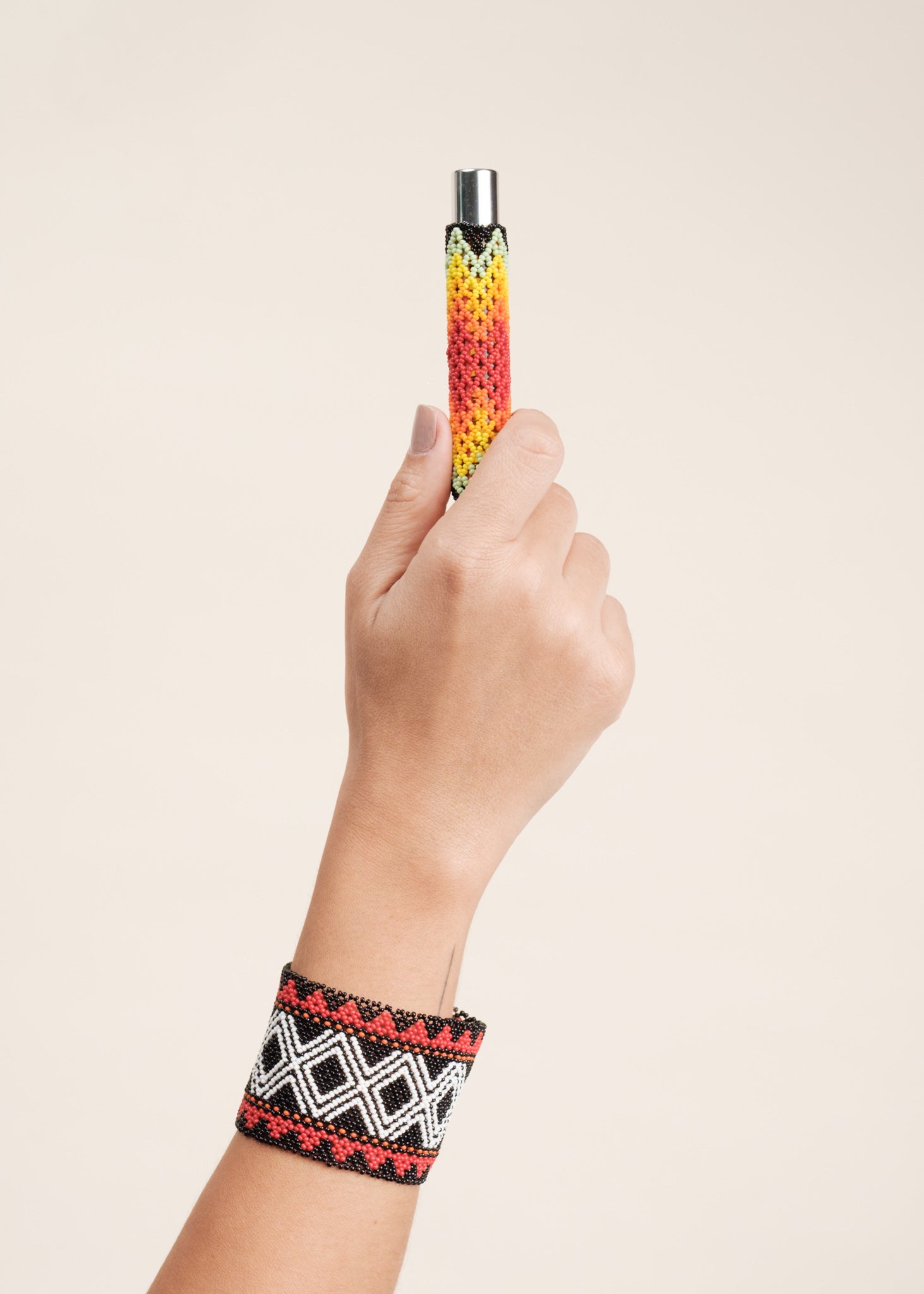 1 un de pulseira elástica feita á mão pelas artesãs do povo Waurá, da Aldeia Ulupuwene, onde dedicam até três dias para produzir cada peça feita com miçangas de vidro.