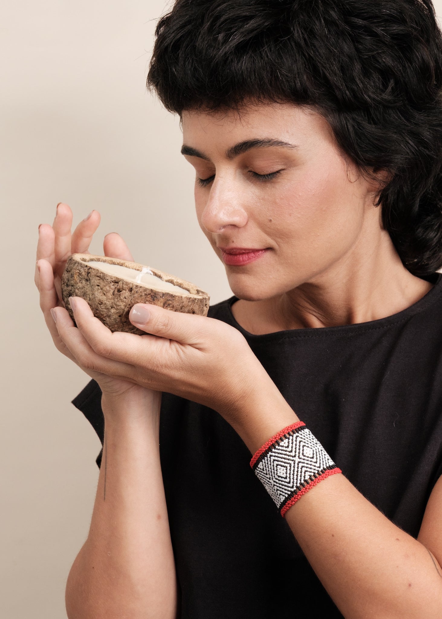 Kit pulseira indígena Waurá + vela aromática Urucuna | Tucum Brasil