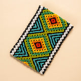 As artesãs Kamayurá aliam nessa arte o conhecimento tradicional dos grafismos à força criativa de cada artista. Elas demoram até 3 dias na criação de cada item feito com miçangas de vidro e fios de nylon.