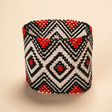 As mulheres do povo Waurá aliam nessa arte o conhecimento tradicional dos grafismos à força criativa de cada artista. Elas demoram até 3 dias na criação de cada item feito com miçangas de vidro