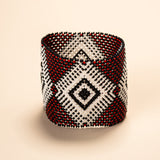As mulheres do povo Waurá aliam nessa arte o conhecimento tradicional dos grafismos à força criativa de cada artista. Elas demoram até 3 dias na criação de cada item feito com miçangas de vidro