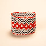 As mulheres do povo Waurá aliam nessa arte o conhecimento tradicional dos grafismos à força criativa de cada artista. Elas demoram até 3 dias na criação de cada item feito com miçangas de vidro